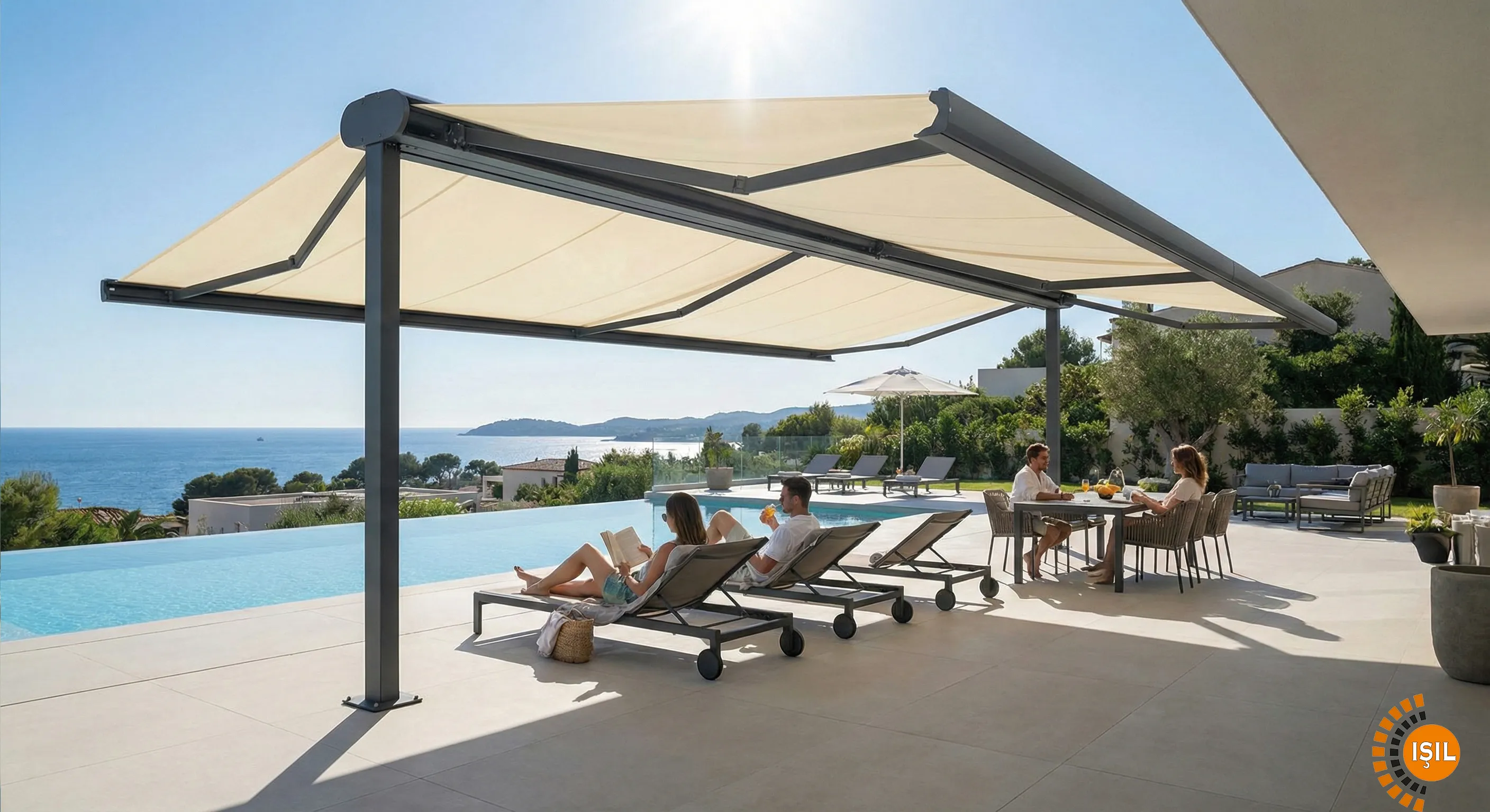 T-Modül tente sistemleri, herhangi bir yere monte edilmeden, kendi ayakları üzerinde durabilen ve her iki yana açılabilen geniş gölgelendirme sistemleridir. Büyük bahçeler, restoran açık alanları ve havuz kenarları için mükemmel bir çözümdür.
